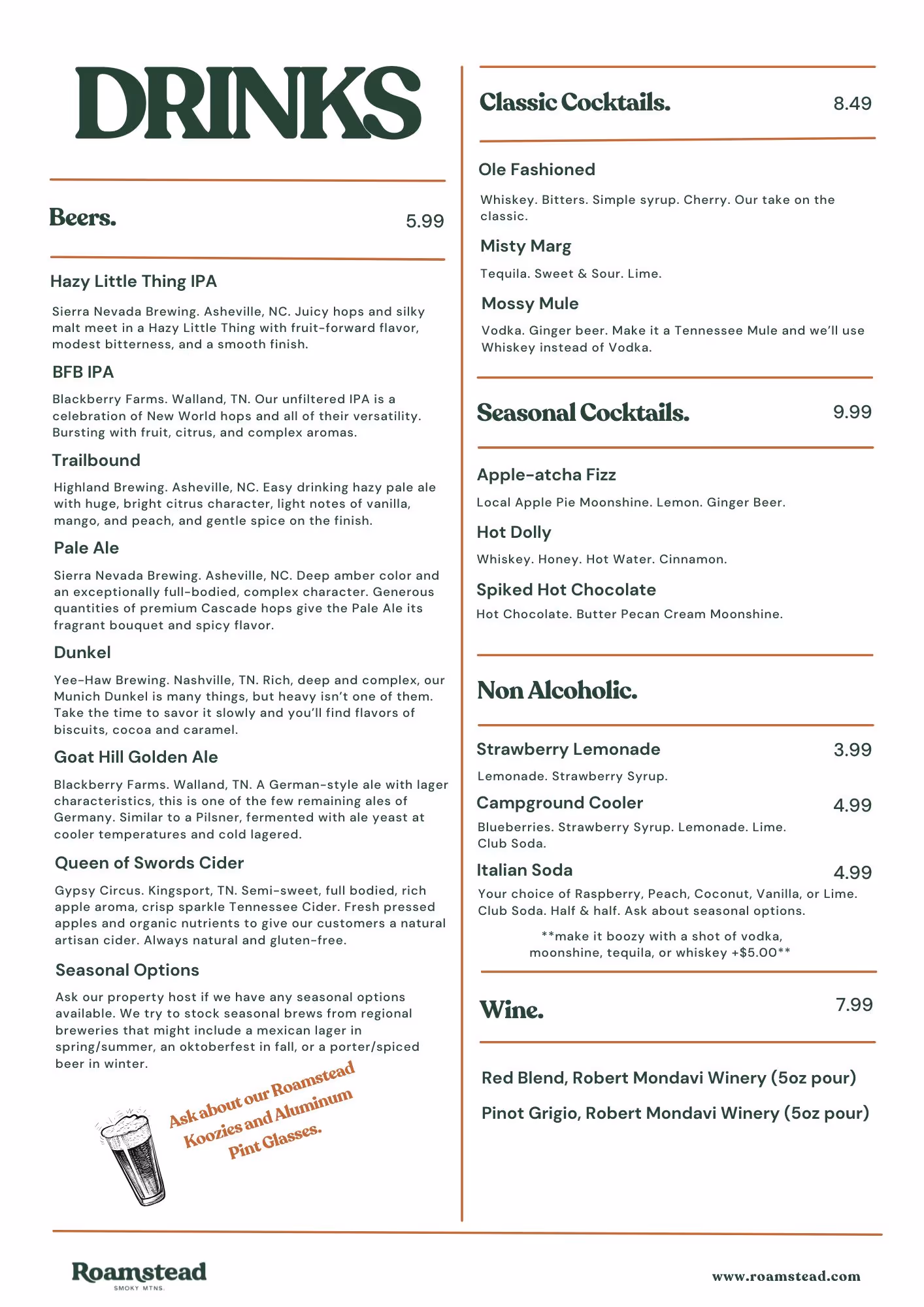 You’ll never be bored on this side of the Smokies! We’re a short drive to all the popular hikes in the National Park, like Clingman’s Dome, and Abrams Falls. But if crowds aren’t your thing, we can also point you to some amazing lesser-known trails within minutes of the campground. Aside from hiking, there’s fly fishing, ziplining, white water rafting, tubing, mountain biking, and swimming, all within an hour drive of Roamstead. Of course, we’re close to all those popular attractions like Dollywood, downtown Gatlinburg, and Pigeon Forge if you’re looking for some excitement. Or, you can stay on the quiet side with a relaxing day at the pool and a stroll through the shops in the nearby Great Smoky Mountains Arts & Crafts Community.